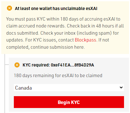 Once you have selected the wallets you want to whitelist, you will see the KYC alert with the "Select your country" dropdown option and the "Begin KYC" button like this:
