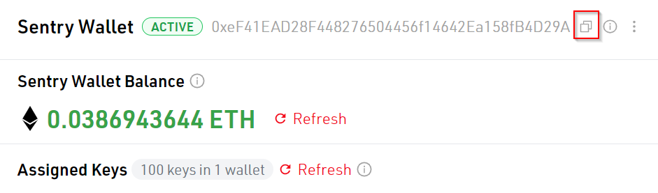 Click the "Copy" icon next to the Sentry Wallet address to copy to address to your clipboard (see image below)