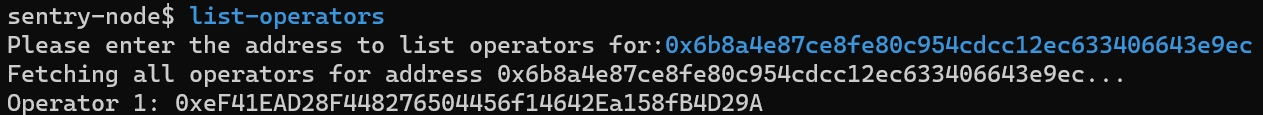 list-operators. Then hit 'Enter'.Enter the public address of the wallet that contains the Key(s).