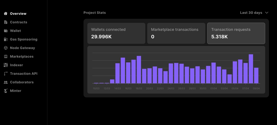 When you use Sequence via the SDKs to build your application, you can see key insights in Xai Builder. You don't need to do any additional work to see valuable metrics about your project, such as the number of connected wallets or daily transaction requests.